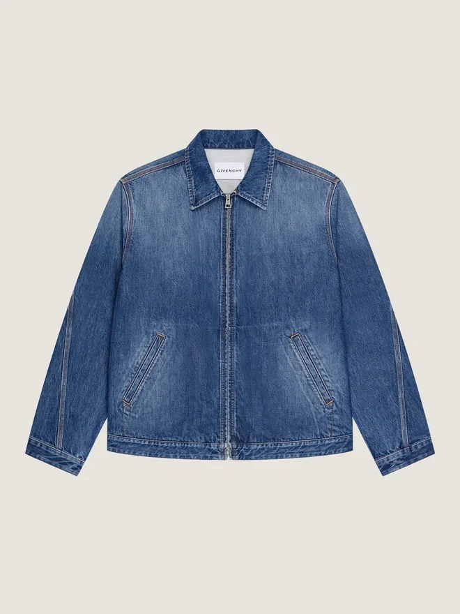 Haciendo eco de la herencia de alta costura de Givenchy, las costuras curvas e invertidas trazan las mangas y las perneras de los pantalones para crear una silueta escultural. Chaqueta de denim azul oscuro. Cuello clásico. Parche de cuero de Givenchy Paris en la parte superior de la espalda. Cierre con cremallera.• Dos bolsillos laterales. • Costuras de alta costura para una silueta redondeada. • Corte holgado. • El modelo mide 1,85 m y lleva una talla M. • Color • Azul oscuro • Composición • 100 % algodón.CuidadosLavar a una temperatura máxima de 30 °C, ciclo delicadoPlanchar a la temperatura máxima de la suela (110 °C) Sin vaporNo secar en secadoraNo usar lejíaNo limpiar en secoPaís de origen: ItaliaCódigo del producto: Bm01Fj516L-401 Información sobre el cuidado: Nuestros talleres diseñan con audacia y creatividad prendas únicas, elaboradas con materiales de alta calidad. Para preservar el esplendor de su producto Givenchy, le recomendamos guardarlo en una bolsa de algodón y en un lugar seco y fresco. Se recomienda la limpieza en seco para la mayoría de nuestros productos. Asegúrese de seguir las instrucciones de cuidado que figuran en la etiqueta de su artículo. No dude en visitar nuestra página dedicada o ponerse en contacto directamente con nuestros equipos de Givenchy si desea obtener más información.Lavado máximo a 30 °C, ciclo delicadoPlanchar a la temperatura máxima de la suela (110 °C) sin vaporNo secar en secadoraNo usar lejíaNo limpiar en seco