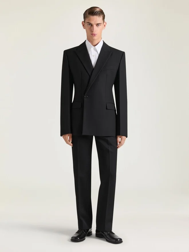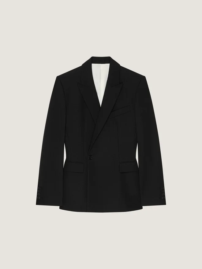 Chaqueta estructurada en lana Grain De Poudre. Solapa en pico asimétrica. De botonadura simple. Puños abotonados. Un bolsillo en el pecho. Dos delanteros