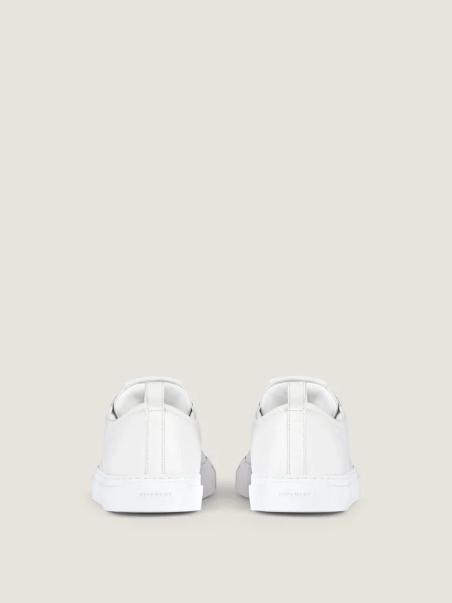 Zapatillas bajas de piel de becerro.Nueva línea City.Firma de Givenchy Paris impresa en la lengüeta.Firma de Givenchy Paris grabada en el talón.Firma de Givenchy Paris impresa en la plantilla de piel.Elástico para ponérselas fácilmente sin desabrocharlas.• Presilla trasera de piel con efecto grosgrain. • Suela de goma. • Color • Blanco • Composición • 100 % piel de becerro. Forro: 100 % piel de cordero.País de origenPortugalCódigo del productoBh00B3H1Wy-100 Información sobre el cuidado: cada par de zapatos elaborado en nuestros talleres es único y está fabricado con materiales excepcionales. Estos materiales, cuidadosamente seleccionados a lo largo de varios años, requieren un mantenimiento regular para poder apreciar plenamente su belleza y comodidad con el paso del tiempo. Para preservar su brillo, recomendamos evitar la exposición a fuentes de calor y luz, así como el contacto con líquidos o productos químicos como perfumes, cremas, detergentes domésticos, etc. Cuando no los utilice, le aconsejamos guardar sus zapatos Givenchy con cuidado en su embalaje original, en un lugar seco y fresco. La humedad podría dañarlos. No dude en visitar nuestra página dedicada o ponerse en contacto directamente con nuestros equipos de Givenchy si desea más información.