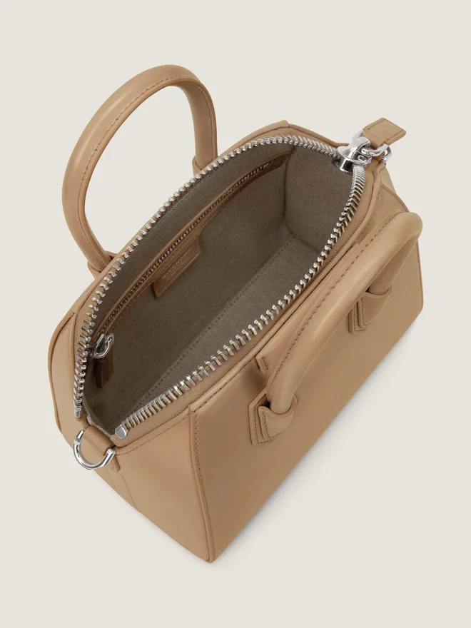 Mini bolso de piel de becerro Box. Línea Antigona. Cierre con cremallera. Se puede llevar en la mano o cruzado. Asas de piel. Correa de hombro de piel ajustable y extraíble. Parche pentagonal con la firma de Givenchy en relieve plateado.Detalles metálicos con acabado plateado. Un compartimento principal con dos bolsillos planos y un bolsillo con cremallera en el interior. DimensionesD 8,7 pulgadas x 7,9 pulgadas x 5,1 pulgadasD Longitud de la correaD Mín.: 43,4 cm • Máx.: 55,1 cm País de origen: Italia Código del producto: Bb5148B00D-285 ¿Qué cabe en tu Antigona Bag? Dimensiones: 15 cm x 11 cm x 7,5 cm Tarjetero Sí Estuche para gafas – Paraguas de bolsillo – iPhone 13 – Libro de bolsillo – iPad Pro – MacBook Air -¿Qué cabe en tu bolso Antigona Bag? Dimensiones: 19,8 cm x 16 cm x 10 cm Tarjetero Sí Estuche para gafas Sí Paraguas de bolsillo – iPhone 13 Sí Libro de bolsillo – iPad Pro – MacBook Air -¿Qué cabe en tu neceser Mini Antigona Bag? Dimensiones: 18 cm x 12 cm x 8 cm Tarjetero Sí Estuche para gafas – Paraguas de bolsillo – iPhone 13 Sí Libro de bolsillo – iPad Pro – MacBook Air -¿Qué cabe en tu Antigona Bag? Dimensiones: 22 cm x 20 cm x 13 cm Tarjetero Sí Estuche para gafas Sí Paraguas de bolsillo Sí iPhone 13 Sí Libro de bolsillo Sí iPad Pro – MacBook Air -¿Qué cabe en tu Antigona Bag pequeño? Dimensiones: 28,5 cm x 24,5 cm x 16,5 cm Tarjetero Sí Estuche para gafas Sí Bolsillo para paraguas Sí iPhone 13 Sí Libro de bolsillo Sí iPad Pro Sí MacBook Air -¿Qué cabe en tu Antigona Bag mediano? Dimensiones: 33 cm x 29 cm x 19 cm Tarjetero Sí Estuche para gafas Sí Paraguas de bolsillo Sí iPhone 13 Sí Libro de bolsillo Sí iPad Pro Sí MacBook Air SíColoresEstilo Cuero Box Cuero envejecido Cuero Box Cuero Box