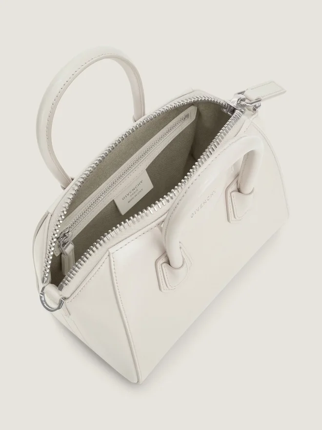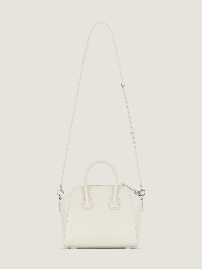 Bolso mini «Bag in Box» de piel de becerro.Línea Antigona.Cierre con cremallera.Se puede llevar en la mano o cruzado.Asas de piel.Correa de hombro de piel ajustable y extraíble.Parche pentagonal con el logotipo de Givenchy en relieve plateado.• Detalles metálicos con acabado plateado. • Un compartimento principal con dos bolsillos planos y un bolsillo con cremallera en el interior. • Color • Marfil • Composición • 100 % piel de becerro.DimensionesD 8,7 pulgadas x 7,9 pulgadas x 5,1 pulgadasD Longitud de la correaD Mín.: 43,4 cm • Máx.: 55,1 cm País de origen: Italia Código del producto: Bb5148B00D-105 ¿Qué cabe en tu Antigona Bag? Dimensiones: 15 cm x 11 cm x 7,5 cm Tarjetero Sí Estuche para gafas – Paraguas de bolsillo – iPhone 13 – Libro de bolsillo – iPad Pro – MacBook Air -¿Qué cabe en tu bolso Antigona Bag? Dimensiones: 19,8 cm x 16 cm x 10 cm Tarjetero Sí Estuche para gafas Sí Paraguas de bolsillo – iPhone 13 Sí Libro de bolsillo – iPad Pro – MacBook Air -¿Qué cabe en tu neceser Mini Antigona Bag? Dimensiones: 18 cm x 12 cm x 8 cm Tarjetero Sí Estuche para gafas – Paraguas de bolsillo – iPhone 13 Sí Libro de bolsillo – iPad Pro – MacBook Air -¿Qué cabe en tu Antigona Bag? Dimensiones: 22 cm x 20 cm x 13 cm Tarjetero Sí Estuche para gafas Sí Paraguas de bolsillo Sí iPhone 13 Sí Libro de bolsillo Sí iPad Pro – MacBook Air -¿Qué cabe en tu Antigona Bag pequeño? Dimensiones: 28,5 cm x 24,5 cm x 16,5 cm Tarjetero Sí Estuche para gafas Sí Bolsillo para paraguas Sí iPhone 13 Sí Libro de bolsillo Sí iPad Pro Sí MacBook Air -¿Qué cabe en tu Antigona Bag mediano? Dimensiones: 33 cm x 29 cm x 19 cm Tarjetero Sí Estuche para gafas Sí Paraguas de bolsillo Sí iPhone 13 Sí Libro de bolsillo Sí iPad Pro Sí MacBook Air SíColoresEstilo Cuero Box Cuero envejecido Cuero Box
