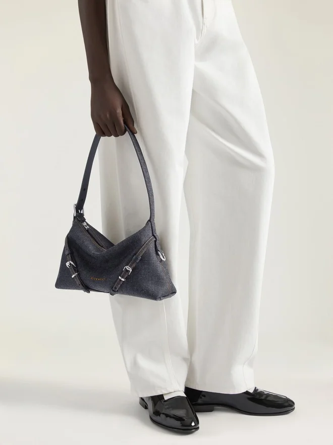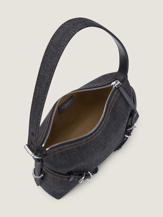 Bolso mini de hombro de denim con costuras en contraste.Línea Voyou.Cierre con cremallera.Correa de hombro ajustable para llevarlo al hombro.• Logotipo de Givenchy bordado en la parte delantera del bolso. • Parche de Givenchy Paris en el interior. • Hebillas metálicas con el nombre de Givenchy grabado. • Detalles metálicos con acabado plateado. • Un compartimento principal. • Forro de lona.Color:Azul índigoComposición:100 % algodón.Dimensiones:28 cm x 19 cm x 9 cmLongitud de la correa:Mín.: 8.7 In