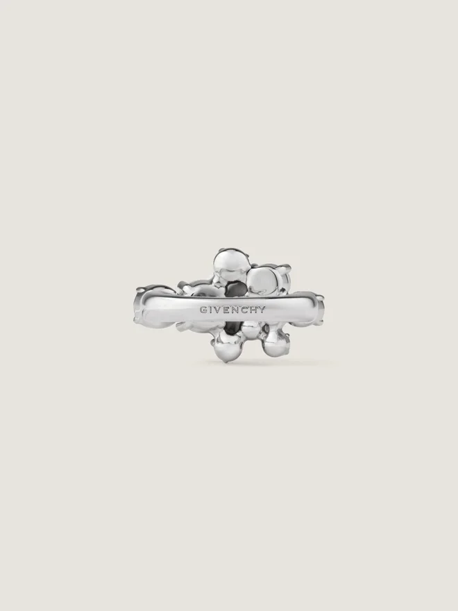 Anillo de metal con acabado plateado con cristales y perlas. Línea Crystal Pearl. Firma de Givenchy grabada en la parte posterior. A juego
