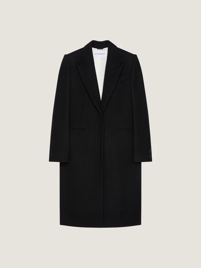Abrigo de lana a medida.Cuello en punta.Cierre con botones.Puños abotonados.Un bolsillo en el pecho.Dos bolsillos delanteros.Forro de satén.La modelo mide 1,77 m y lleva una talla 36. D ColorD NegroD ComposiciónD 100 % lana.D ForroD 100 % viscosa.D CuidadosD No lavarD Planchar a la temperatura máxima de la suela (110 °C)D Latin American (es-419)D EspañolD 419D 419D 419D 419D 419D 419D 419D 419D 419D 419D 419D 419D 419D 419D 41 Forro: 100 % viscosa.CuidadosNo lavarPlanchar a la temperatura máxima de la suela (110 °C) Sin vaporNo secar en secadoraNo usar lejíaLimpieza en seco con hidrocarburosPaís de origenItaliaCódigo del productoBwc0Dz15X2-001 Información sobre el cuidado: nuestros talleres diseñan con audacia y creatividad prendas únicas, elaboradas con materiales de alta calidad. Para preservar el esplendor de su producto Givenchy, le recomendamos guardarlo en una bolsa de algodón y en un lugar seco y fresco. Se recomienda la limpieza en seco para la mayoría de nuestros productos. Asegúrese de seguir las instrucciones de cuidado que figuran en la etiqueta de su artículo. No dude en visitar nuestra página dedicada o ponerse en contacto directamente con nuestros equipos de Givenchy si desea obtener más información.No lavarPlanchar a la temperatura máxima de la suela (110 °C) sin vaporNo secar en secadoraNo usar lejíaLimpieza en seco con hidrocarburos