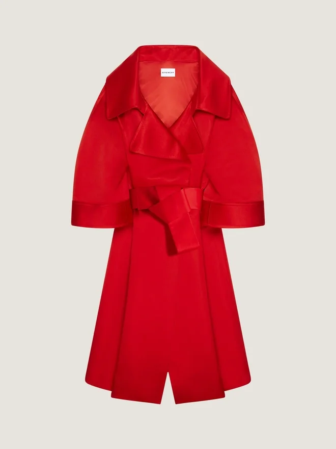 Abrigo largo de satén de seda duquesa.Cuello con solapas maxi.Cierre con botones y cinturón desmontable.Dos bolsillos delanteros.• Volumen envolvente. • Corte holgado. • La modelo mide 1,77 m y lleva una talla 36. D ColorD VermellónD ComposiciónD 100 % seda.D Forro: 100 % viscosa.D CuidadosD • No lavarD • Planchar a la temperatura máxima de la suela (110 °C)D • No secar en secadoraD • No usar lejíaD • Limpieza en seco con hidrocarburosD Verde mentaD Este estampado floral, tomado de un pañuelo de los archivos de Hubert de Givenchy, reinterpreta el legado de la casa en un diseño gráfico contemporáneoD Abrigo largo tipo capullo en saténD • Abrigo largo en satén de seda duquesa.D • Cuello con solapas maxi.D • Cierre con botones y cinturón desmontable.D • Dos bolsillos delanteros.D • Volumen envolvente.D • Corte holgado.D D La modelo mide 1,77 m y lleva Forro: 100 % viscosa.CuidadosNo lavarPlanchar a la temperatura máxima de la suela (110 °C) Sin vaporNo secar en secadoraNo usar lejíaLimpieza en seco con hidrocarburosPaís de origenItaliaCódigo del productoBwc0Fs1Yg0-640 Información sobre el cuidado: nuestros talleres diseñan con audacia y creatividad prendas únicas, elaboradas con materiales de alta calidad. Para preservar el esplendor de su producto Givenchy, le recomendamos guardarlo en una bolsa de algodón y en un lugar seco y fresco. Se recomienda la limpieza en seco para la mayoría de nuestros productos. Asegúrese de seguir las instrucciones de cuidado que figuran en la etiqueta de su artículo. No dude en visitar nuestra página dedicada o ponerse en contacto directamente con nuestros equipos de Givenchy si desea obtener más información.No lavarPlanchar a la temperatura máxima de la suela (110 °C) sin vaporNo secar en secadoraNo usar lejíaLimpieza en seco con hidrocarburos