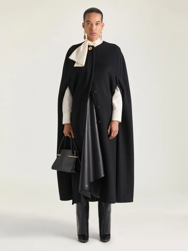 Capa larga de doble cara en lana y cachemira.Cuello redondo.Cierre con botones ocultos.Botón dorado con el grabado de GIVENCHY.Aberturas en las mangas.La modelo mide 1,77 m y lleva una talla 36.D ColorD D Negro/GrisD D ComposiciónD D 70 % lana, 30 % cachemira.D CuidadosNo lavarPlanchar a la temperatura máxima de la suela (110 °C) sin vaporNo secar en secadoraNo usar lejíaLimpieza en seco profesional, con tetracloroetileno e hidrocarburos, Tratamiento muy moderadoPaís de origen: Italia Código del producto: Bw00Tm151K-002 Información sobre el cuidado: Nuestros talleres diseñan con audacia y creatividad prendas únicas, confeccionadas con materiales de alta calidad.Para preservar el brillo de su producto Givenchy, le recomendamos guardarlo en una bolsa de algodón y en un lugar seco y fresco. Se recomienda la limpieza en seco para la mayoría de nuestros productos. Asegúrese de seguir las instrucciones de cuidado que figuran en la etiqueta de su artículo. No dude en visitar nuestra página dedicada o ponerse en contacto directamente con nuestros equipos de Givenchy si desea obtener más información.No lavarPlanchar a la temperatura máxima de la suela (110 °C) sin vaporNo secar en secadoraNo usar lejíaLimpieza en seco profesional, con tetracloroetileno e hidrocarburos, tratamiento muy moderado