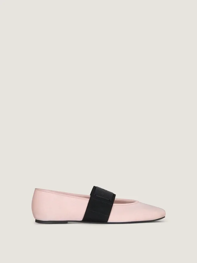 Bailarinas planas de satén. Línea cuadrada recortada. Banda elástica con etiqueta de cuero Givenchy Paris tono sobre tono. Firma de Givenchy