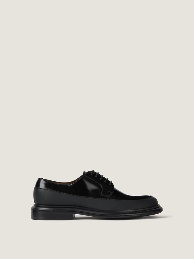 Zapatos Derby de piel de toro. Firma de Givenchy en capas en la vira, en el lateral. Firma de Givenchy grabada en la piel